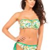 Cső fazonú, puha szivacsos, levehető vállpántos bikinifelső oldalán merevítővel és kötős oldalpánttal. Oldalt kötős, hátul húzott, csípő szabású bikinialsó.