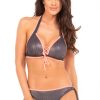 Push-upos, elöl szabályozható háromszög bikini felső, nyakban és hátul kötős. Oldalt kötős, hátul húzott, csípő szabású bikini alsó.