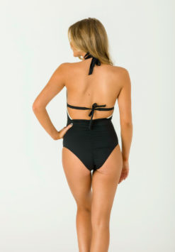 Mélyen dekoltált, elöl fodorral díszített, kivehető szivacsos, egyrészes fürdőruha.