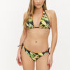 Kivehető, puha szivacsos, elöl szabályozható, B kosaras háromszög bikinifelső, hátul és nyakban is megkötős.Oldalt kötős, hátul húzott, csípő szabású bikinialsó.