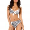 Hátul kötős, B kosaras, bandeau fazonú push-up melltartó, levehető vállpánttal, pillangó kellékkel. Oldalt kötős, spagetti pántos bikini alsó.