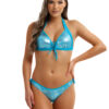 Fazon: C kosaras, push-up, elöl szabályozható, oldalt és alul megerősített háromszög bikinifelső, nyakban és hátul kötős. A két kosár közötti fűző szexi megjelenést kölcsönöz, és a kosarak közötti távolság szabályozhatóságát biztosítja.