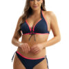 Fazon: C kosaras, push-up, elöl szabályozható, oldalt és alul megerősített háromszög bikinifelső, nyakban és hátul kötős. A két kosár közötti fűző szexi megjelenést kölcsönöz, és a kosarak közötti távolság szabályozhatóságát biztosítja.
