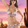 Push-upos, nyakban és hátul kötős, elöl szabályozható háromszög bikini felső. Oldalt kötős bikini alsó.