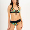 Engedd, hogy a trópusi nyár varázsa magával ragadjon a Tropic World kollekció részeként megalkotott 573-06-03 push-up háromszög bikinivel! Ez a modell C kosaras, push-up hatású, elöl szabályozható, oldalt és alul megerősített bikinifelsővel rendelkezik, mely nyakban és hátul kötős megoldású. A két kosár közötti fűző egyedi, szexi megjelenést kölcsönöz, és lehetővé teszi a távolság szabályozását a tökéletes illeszkedésért.