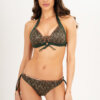 Fazon: C kosaras, push-up, elöl szabályozható, oldalt és alul megerősített háromszög bikinifelső, nyakban és hátul kötős. A két kosár közötti fűző szexi megjelenést kölcsönöz, és a kosarak közötti távolság szabályozhatóságát biztosítja.