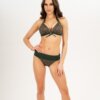 Fazon: C kosaras, push-up, elöl szabályozható, oldalt és alul megerősített háromszög bikinifelső, nyakban és hátul kötős. A két kosár közötti fűző szexi megjelenést kölcsönöz, és a kosarak közötti távolság szabályozhatóságát biztosítja.