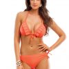 Push-upos, elöl szabályozható háromszög bikini felső, nyakban és hátul kötős. Oldalt kötős, hátul húzott, csípő szabású bikini alsó.